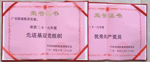 廣安凱瑞集團(tuán)黨委榮獲“2019年度先進(jìn)基層黨組織”、廣安凱瑞集團(tuán)董事長、黨委書記李勇同志榮獲“2019年度優(yōu)秀共產(chǎn)黨員”。